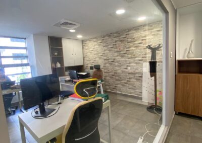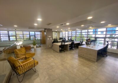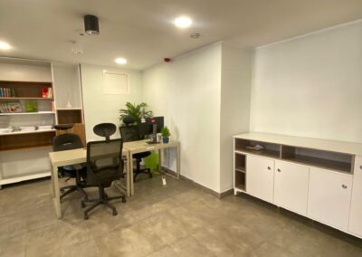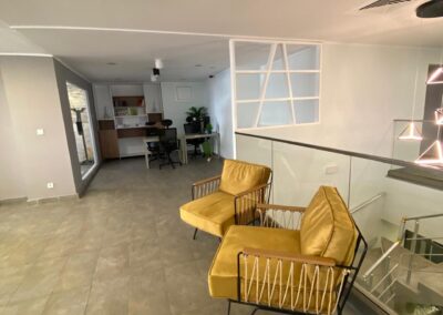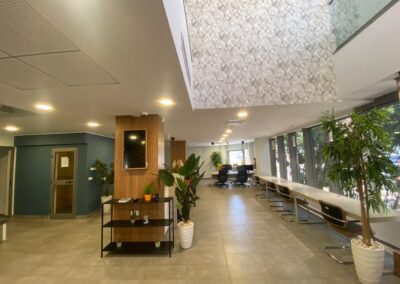 L’open space dispose de trois boxes de call avec isolation phonique, garantissant un environnement de travail calme et propice à la concentration. Une salle de réunion de taille généreuse, complétée par deux petites salles de réunion, permet d’organiser des échanges efficaces. Un espace de pause et de divertissement, agrémenté d’une cantine, offre un cadre de vie convivial pour les employés. La décoration intérieure, d’une qualité exceptionnelle, contribue à créer une atmosphère de travail inspirante. Quatre places de parking sont disponibles en sous-sol pour faciliter l’accès.